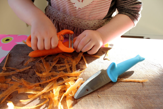 Sikke fine sager - jeg må vist ind og lure på den side, for Bastian ELSKER at hjælpe til i køkkenet og det der med en kniv, der ikke er for skarp (men samtidig kan skære) er et problem vi kender herhjemme ;-)